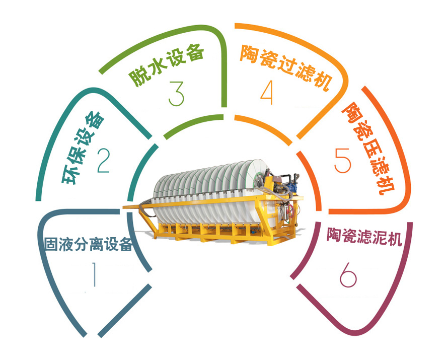 陶瓷過濾機(jī)、盤式過濾機(jī)目前已廣泛應(yīng)用于銅、鐵、金、銀、錫、鋁、鉛、鋅、鎳、鈷、鈀、鉬、鉻、銘、 硫、磷、煤、硅、石英、云母、錫土等精礦、尾礦脫水、化工行業(yè)氧化鋅、氧化鉛、硫化鋅、電解渣、浸出渣、爐渣 的脫水及環(huán)保污水泥脫水廢酸處理等。物料細(xì)度從-100目到-450目以及各種超細(xì)物料。