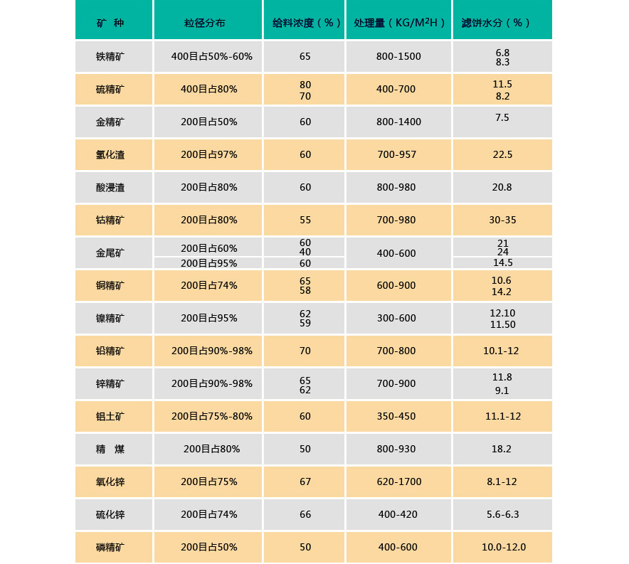 陶瓷過濾機(jī)、盤式過濾機(jī)目前已廣泛應(yīng)用于銅、鐵、金、銀、錫、鋁、鉛、鋅、鎳、鈷、鈀、鉬、鉻、銘、 硫、磷、煤、硅、石英、云母、錫土等精礦、尾礦脫水、化工行業(yè)氧化鋅、氧化鉛、硫化鋅、電解渣、浸出渣、爐渣 的脫水及環(huán)保污水泥脫水廢酸處理等。物料細(xì)度從-100目到-450目以及各種超細(xì)物料。